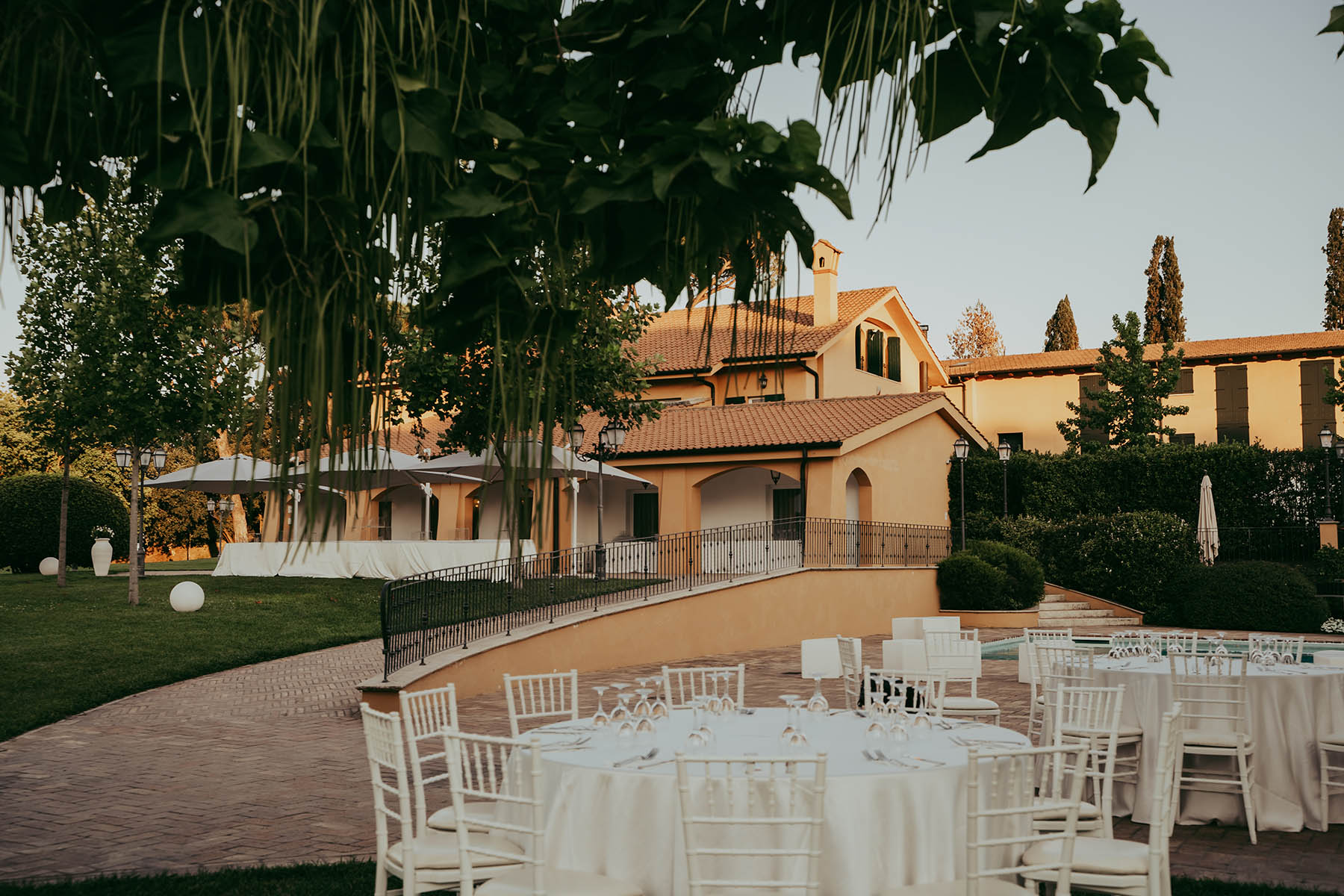 Nel primo piano della dimora padronale si trova la suggestiva stanza del camino con adiacente un piccolo salotto, mentre nel piano superiore vi attende una splendida suite nuziale a vostra disposizione dopo il ricevimento. Potrete scegliere di usufruire degli ambienti interni e del bellissimo giardino a seconda del fluire delle stagioni e dei vostri desideri.